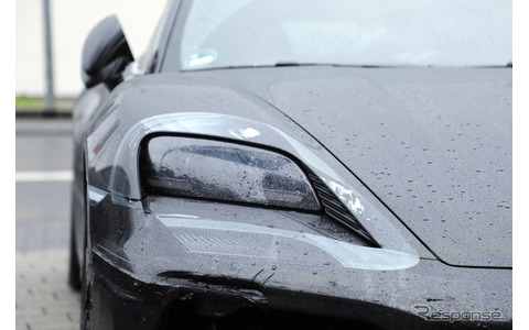 これまで捕捉したプロトタイプでは、リアクォーターウィンドウのラインの形状をフェイクボディと厚手のビニールで隠していたが、ほぼ実物の姿を見ることができたと言える。だが、テスト車両は依然としてフェイククロームトリムで輪郭を覆い隠しており、911を偽装しているかのようだ。