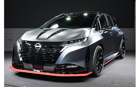 日産自動車と日産モータースポーツ&カスタマイズは1月9日、コンパクトスポーツ『AURA NISMO(オーラニスモ)』のボディに『X-TRAIL NISMO(エクストレイルニスモ)』のパワーユニットを搭載した高性能スポーツ『AURA NISMO RS Concept』を東京オートサロン2026で初公開した。SNSでは、「これはヤバいです!」「良い意味で変態臭がする」「市販化してほしい」などのコメントが寄せられ、話題となっている。