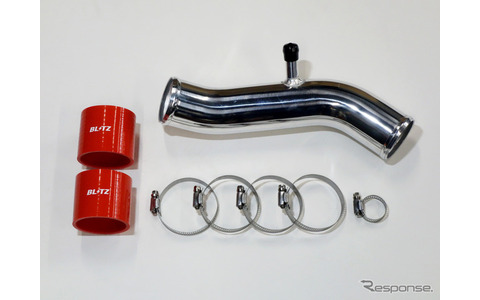 「BLITZサクションキット」はアルミパイプ+シリコンホースの組み合わせを採用したエアインテーク用パーツ。純正のゴムサクションパーツと比較して吸入時の形状変化を抑制し、吸入効率の向上とレスポンスアップを実現している。