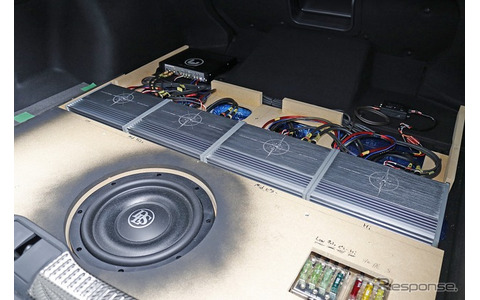 ◆4台のパワーアンプを横一列に配置、ラゲッジ最大の見どころとなるユニットレイアウト