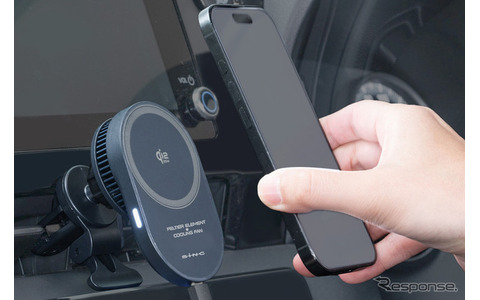 ますはこちら、「SEIWA(セイワ)」の『冷却マグホールドスマホ充電ホルダーQi2.2/AC(D663)』(価格:オープン、実勢価格:7980円前後)からお見せする。当品はまず、国際規格Qi2.2に対応し最大25Wの無線充電を行えることが特長だ。そしてさらにはペルチェ素子とクーリングファンが採用されていて充電時の発熱の抑制が可能だ。