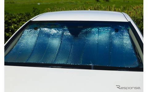 カー用品店などへ行くと、クルマ用シェードはさまざまなモデルが販売されている。一般的なのは日よけアイテムとして展開される夏向きの商品で、フロントウインドウに広げて直射日光を遮る折りたたみ式がもっともポピュラーだろう。