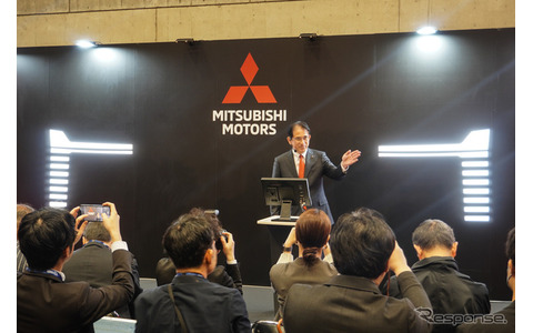 会場でプレスカンファレンスをおこなった岸浦社長は、パジェロの車名は明言しなかったが、「新型クロスカントリーSUV、これは年内に投入する予定だ」と語った。準備は順調に進んでいるという。それがパジェロになるかどうか、という記者からの質問には「今日はその辺は控えたいなと思います」と濁したものの、明確に否定はしなかった。また、三菱ブースの壁には、ヘッドライトのような図形が黒地に白く描かれており、これが新しい“パジェロ顔”になるとみられる。