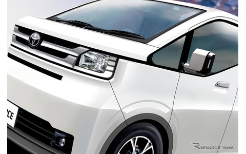 予想CGは、コンセプトをベースに量産仕様としたもの。フロントエンドでは、ヘッドライトを1灯タイプで大型化し、グリルに2本メッキバータイプに変更した。側面では、リアクォーターウィンドウを拡大、タイヤハウスのキャラクターラインやドアノブも新設計されている。