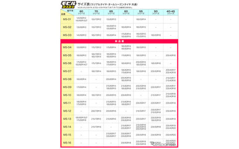 コンパクトカーやミニバンにも対応! ソフト99の布製タイヤチェーン「モビルシュシュ」普通車サイズを拡充 (7/9)カーグッズカーグッズ新製品情報2025.11.20 Thu 18:00サイズ表《写真提供 ソフト99》前の写真次の写真この写真の記事 ポスト シェア 送る カーグッズ
